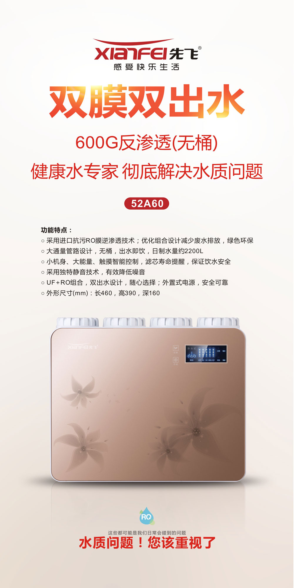 3. 小機(jī)身、大能量、觸摸智能控制,濾芯壽命提醒,保證飲水安全;