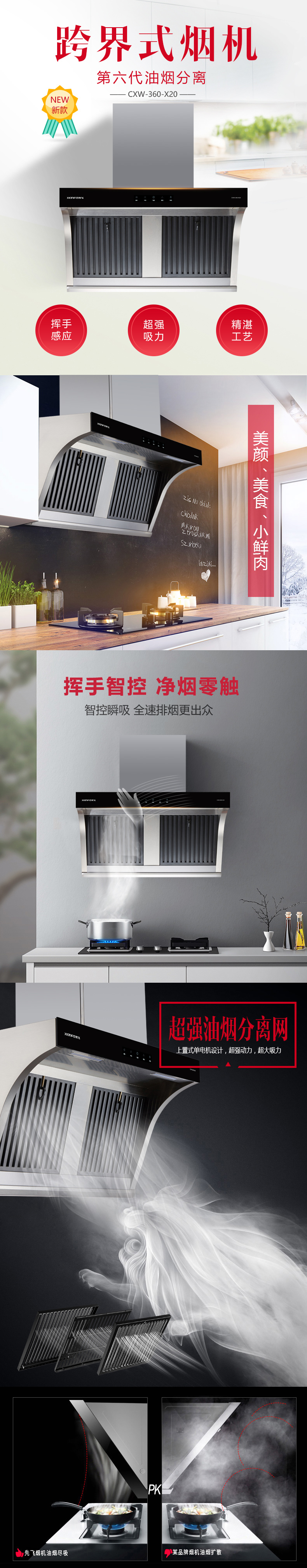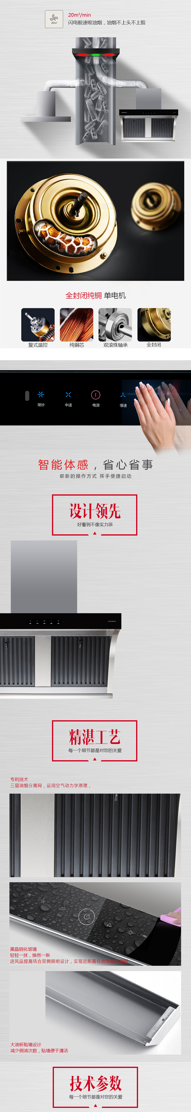 超強(qiáng)下潛式電吸 熱炫除油 一鍵自清洗 揮手智控 凈煙零觸 反轉(zhuǎn)深吸進(jìn)風(fēng)網(wǎng)設(shè)計 黑晶玻璃 輕輕一抹 煥然一新 大油杯貼墻設(shè)計