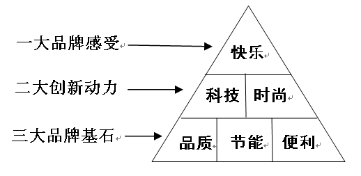 快樂(lè),是先飛品牌多年的精華沉淀,是先飛品牌的精髓所在,是先飛品牌向客戶(hù)所讓渡的核心價(jià)值??鞓?lè)是客戶(hù)對(duì)先飛品牌情感升華后的一大品牌感受,另外先飛品牌還有二大創(chuàng)新動(dòng)力:科技與時(shí)尚;三大品牌基石:品質(zhì)、節(jié)能與便利,共同構(gòu)成了先飛品牌123定位。