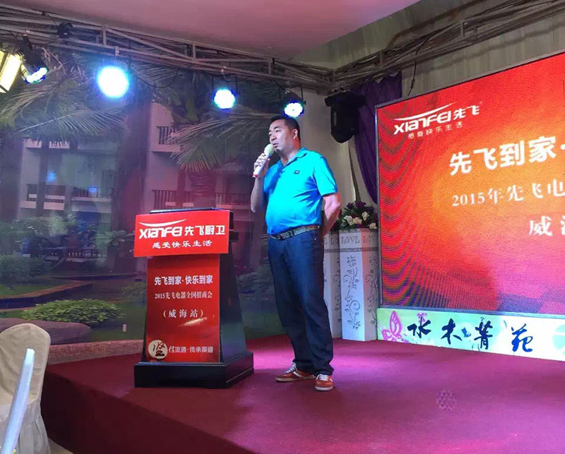 2015年7月16日,在威海榮成市(縣級市)水木菁苑生態(tài)酒店內,正在隆重召開先飛廚衛(wèi)2015年全國招商會議(威海站)。先飛總部黃總、威海先飛李總蒞臨會議現場,與到會意向客戶作了面對面近距離交流,推出年度最大力度招商政策,會議現場氣氛極為活躍,到會客戶踴躍下訂金要貨!