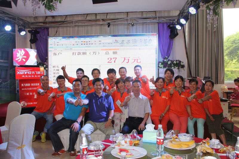 讓我們以威海先飛開拓榮成鄉(xiāng)鎮(zhèn)市場為例,威海先飛前期共派出6名業(yè)務(wù)精英全部下到榮成下面17個(gè)鄉(xiāng)鎮(zhèn),全面掃街多達(dá)半個(gè)月時(shí)間。并于7月16日在榮成市召開了先飛廚衛(wèi)2015年全國招商會(huì)議(威海站),到會(huì)鄉(xiāng)鎮(zhèn)客戶接近40家。截止到今日,簽約落定的客戶數(shù)量與回款金額仍在不斷攀升,可謂是一次性全面打開了先飛在榮成的市場。同時(shí)據(jù)威海先飛李總介紹,他們還會(huì)復(fù)制這種招商模式,很快再去另外一個(gè)縣級市場全面招商。