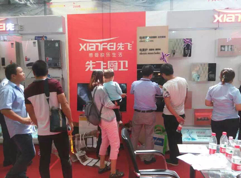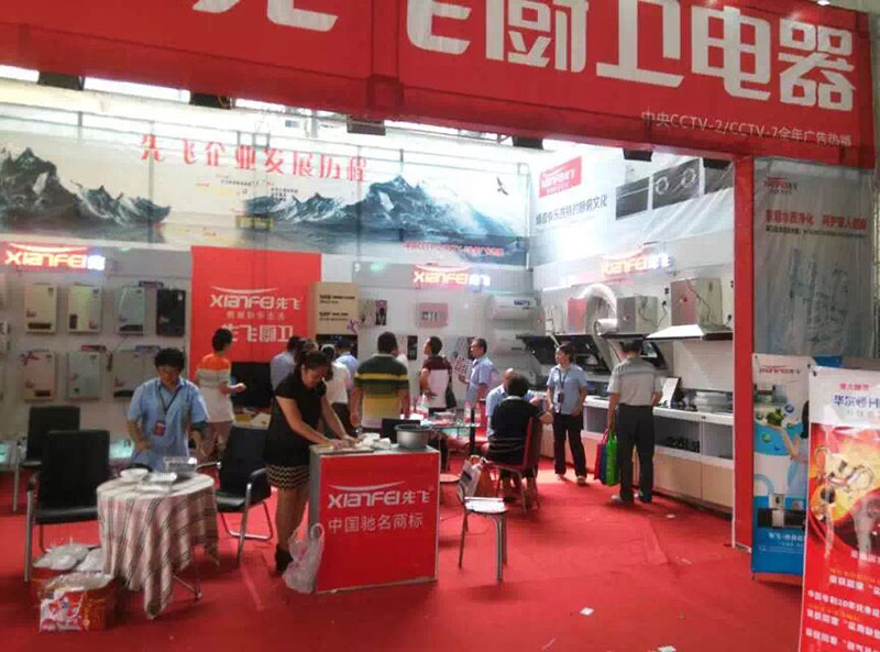 2015年9月4日,中原國際家電博覽會在鄭州市國際博覽中心隆重開幕!先飛展廳位于大會會場入口,正是人流必經(jīng)之地,也是先飛廚衛(wèi)多次參會專用展廳位置。同時,在會場外布置8米高的噴繪廣告以及迎風飄飄的大量刀旗,宣傳氣場強大!