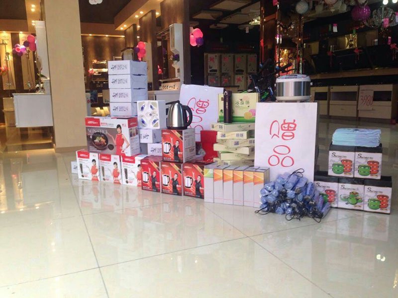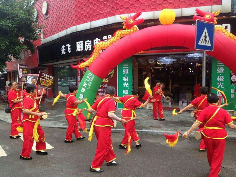 犍為先飛利用自己店面品類多,面積大的特點(diǎn),廚房電器綜合衛(wèi)浴,燈具聯(lián)合促銷,產(chǎn)品上都精心的做了點(diǎn)綴?;顒?dòng)當(dāng)天鑼鼓喧天,腰鼓助興,氣場強(qiáng)大!