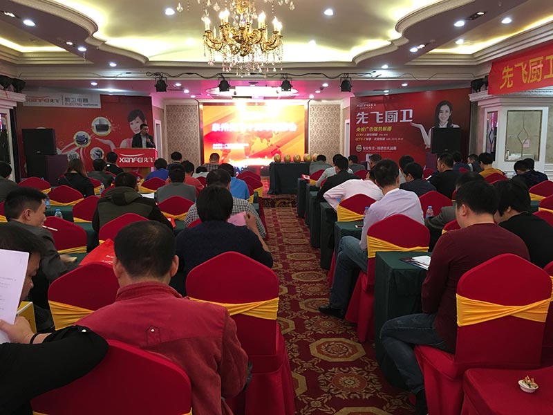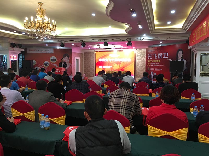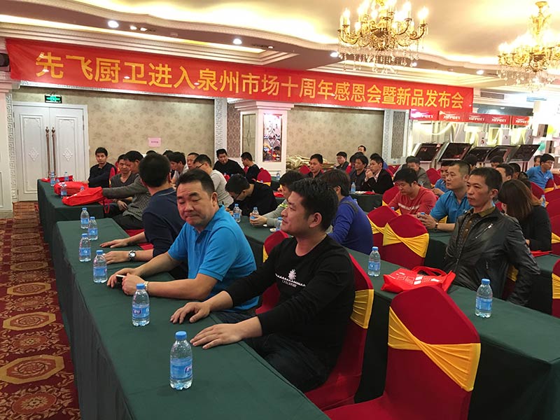 2016年4月12日下午,在福建省泉州市明發(fā)大酒店二樓宴會(huì)廳內(nèi),先飛廚衛(wèi)進(jìn)入泉州市場(chǎng)十周年感恩會(huì)暨2016春季新品發(fā)布會(huì)正在熱火朝天舉辦中!