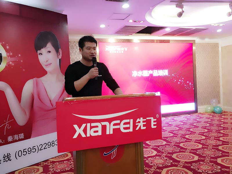 先飛公司黃總、聶總、大區(qū)經(jīng)理林儉富、凈水器主管陳磊全部到場(chǎng)與客戶親密互動(dòng),泉州經(jīng)銷商張總帶領(lǐng)十幾人的公司團(tuán)隊(duì)更是全力投入,讓八十多家到會(huì)客戶感受到先飛實(shí)干的氛圍,并將整場(chǎng)會(huì)議推向成功與圓滿!