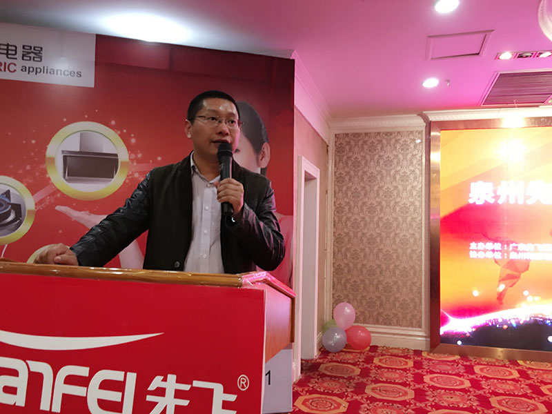 先飛掌門人黃總不僅在會(huì)前給泉州先飛業(yè)務(wù)團(tuán)隊(duì)作了產(chǎn)品講解,而且在會(huì)上給大家作了非常詳細(xì)的產(chǎn)品指引,贏得大家陣陣掌聲!先飛聶總給大家分享了煙機(jī)、灶具等廚衛(wèi)新品知識(shí),凈水器主管陳磊給大家分享了凈水器產(chǎn)品知識(shí),先飛大區(qū)經(jīng)理林儉富作為會(huì)議主持人貫穿全場(chǎng)。