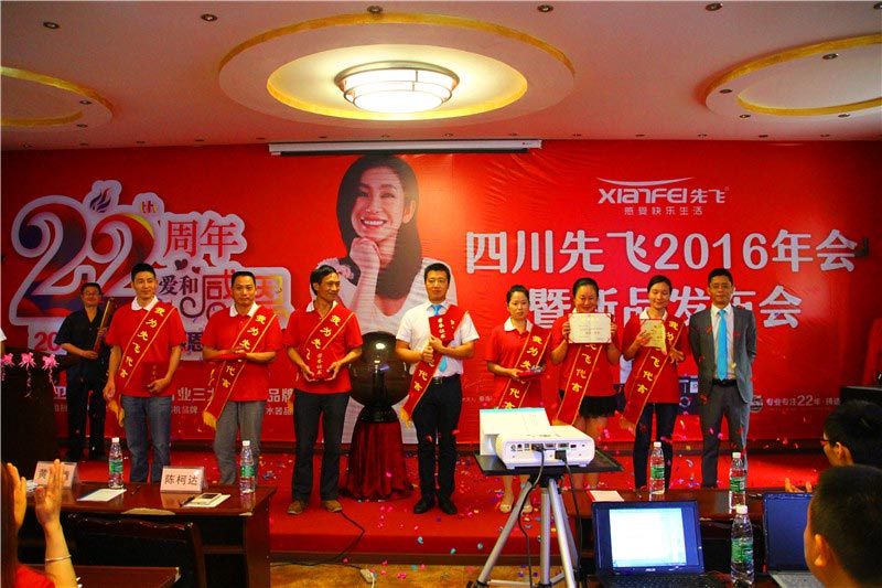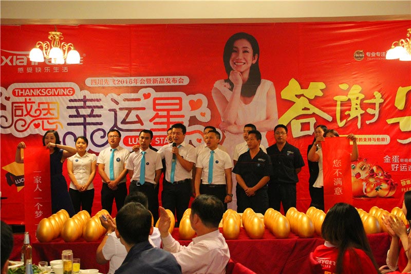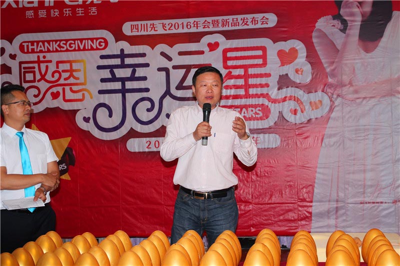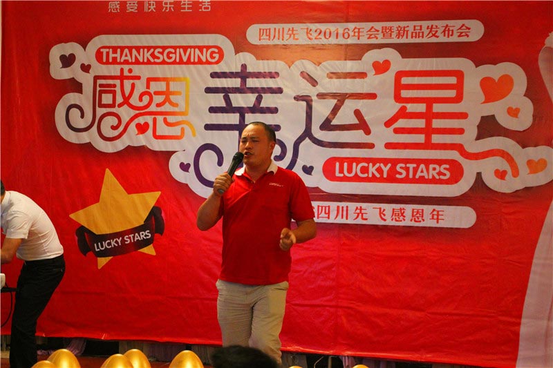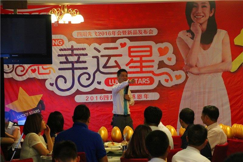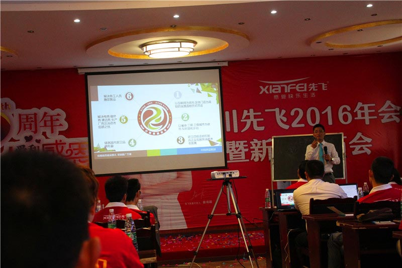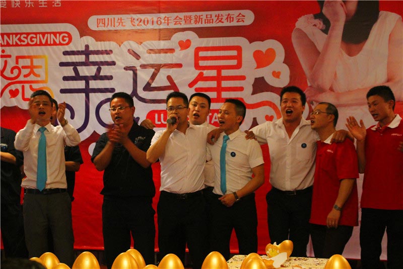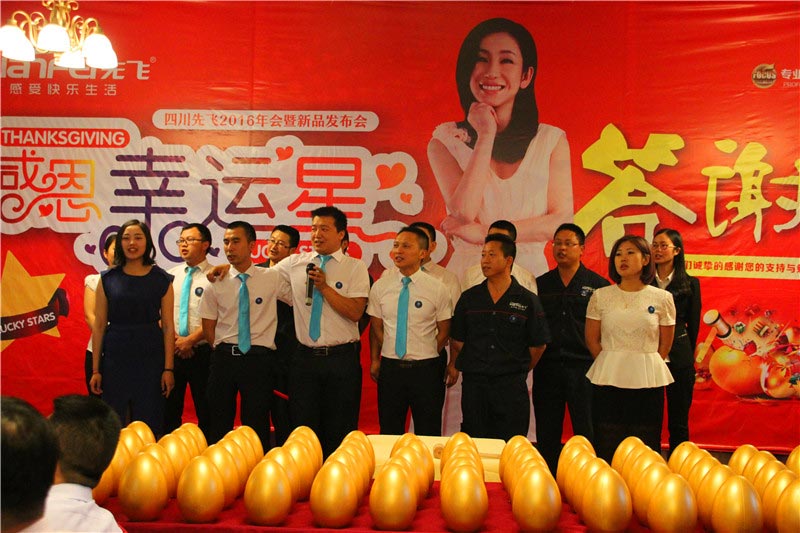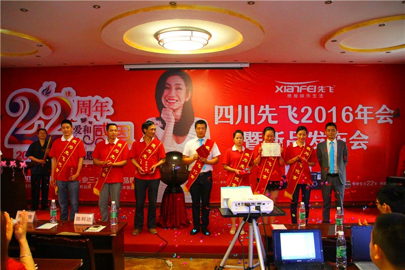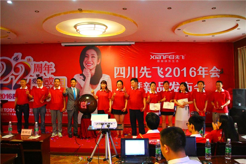 2016年5月21日“四川先飛521年會(huì)暨2016新品發(fā)布會(huì)”于成都臥牛山莊隆重舉辦,出席本次會(huì)議的領(lǐng)導(dǎo)和嘉賓有先飛電器燃具有限公司總經(jīng)理黃漢騰、先飛電器燃具有限公司西南大區(qū)經(jīng)理陳希勇 、四川先飛總經(jīng)理陳柯達(dá)、以及來自全川各地的經(jīng)銷商代表。