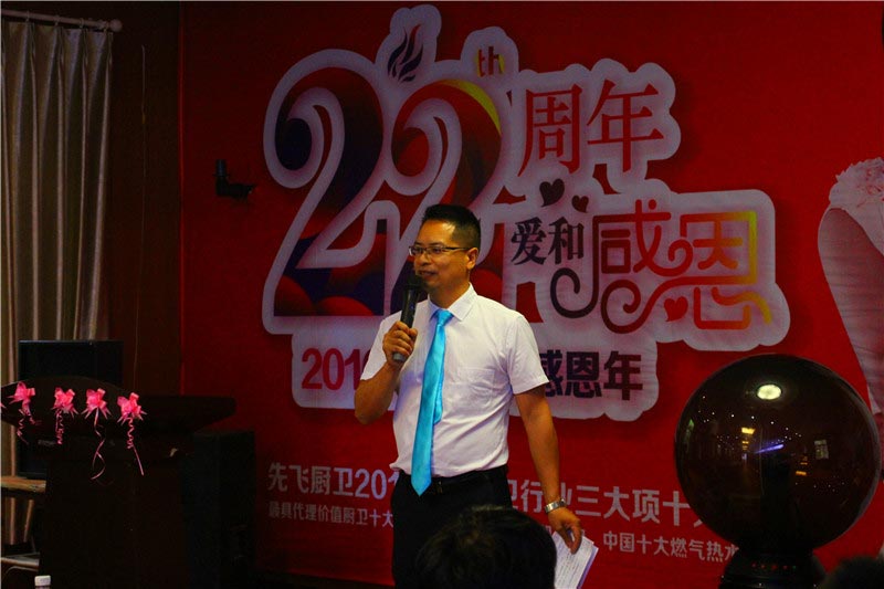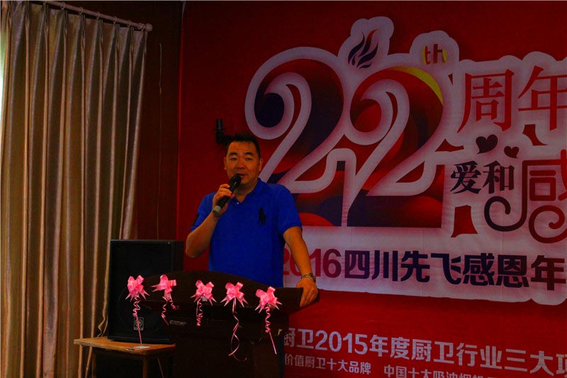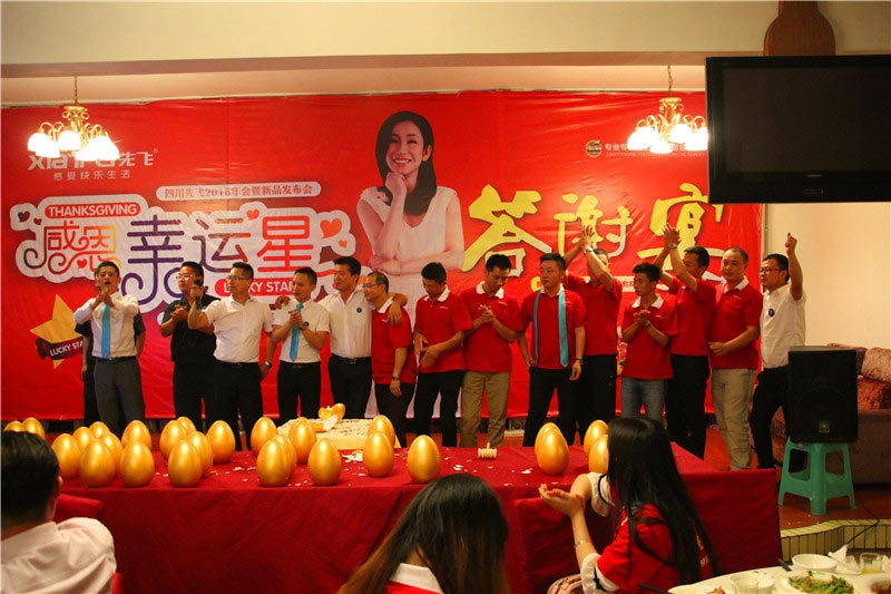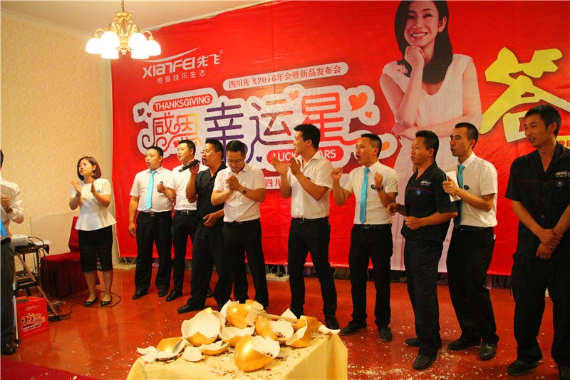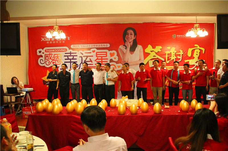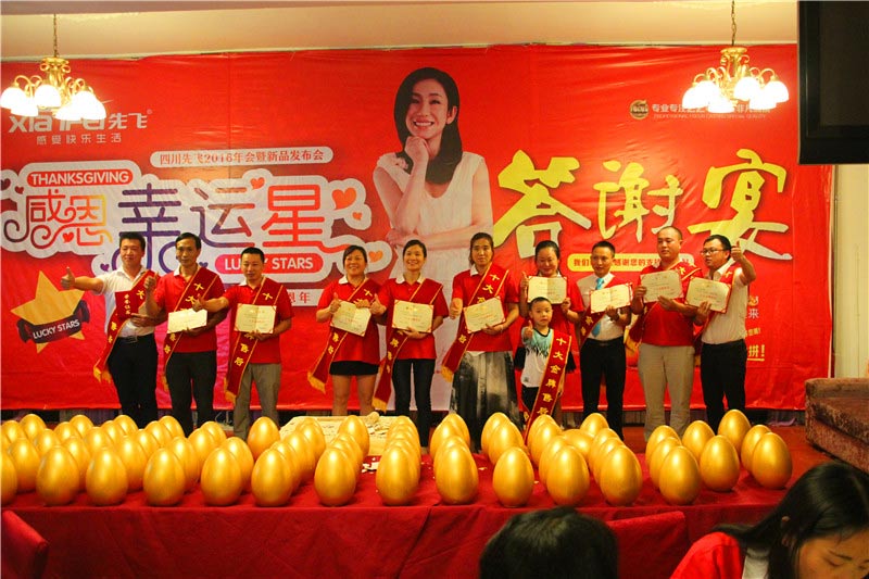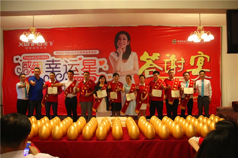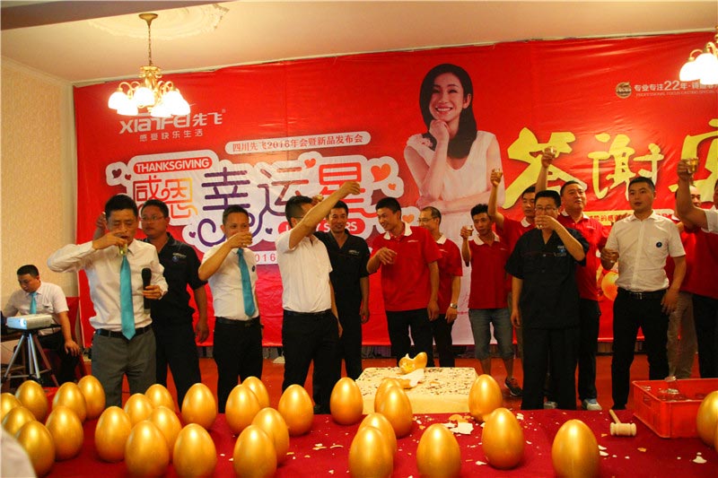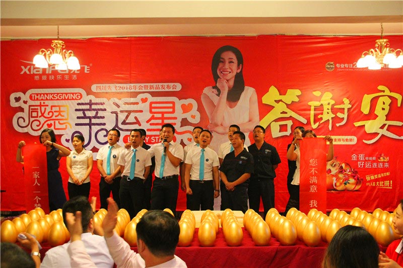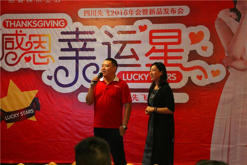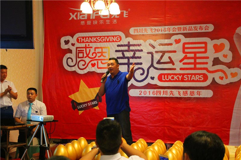 2016年5月21日“四川先飛521年會(huì)暨2016新品發(fā)布會(huì)”于成都臥牛山莊隆重舉辦,出席本次會(huì)議的領(lǐng)導(dǎo)和嘉賓有先飛電器燃具有限公司總經(jīng)理黃漢騰、先飛電器燃具有限公司西南大區(qū)經(jīng)理陳希勇 、四川先飛總經(jīng)理陳柯達(dá)、以及來自全川各地的經(jīng)銷商代表。