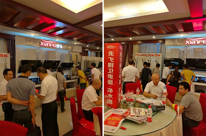 先飛電器經(jīng)過精心籌備,現(xiàn)場展示了最新的負離子會呼吸、油煙分離和高溫蒸汽清洗系列煙機,2016年重磅推出的大火蓋猛火系列灶具,使用了2018款超越版展架, 體現(xiàn)了先飛品牌的領先形象,在會議現(xiàn)場獲得了眾多客戶的關注,詳細了解先飛精致的產(chǎn)品工藝和功能賣點,并紛紛留下聯(lián)系方式,以便后期詳細洽談。