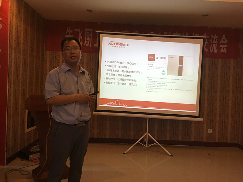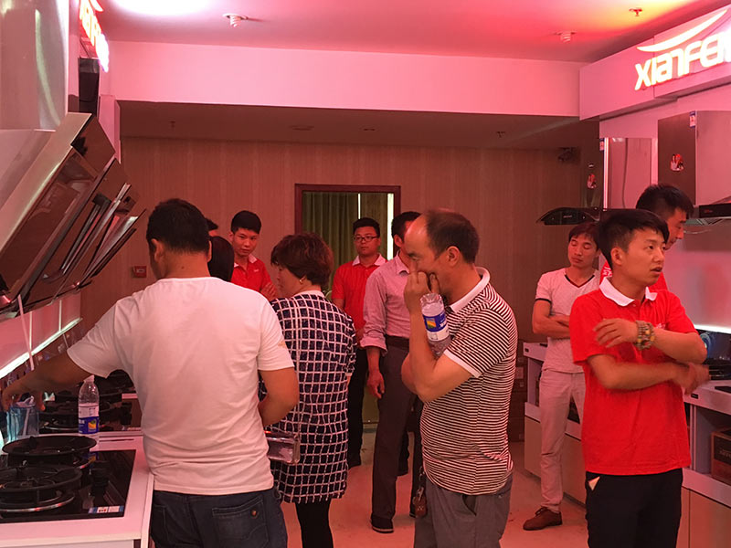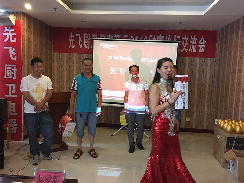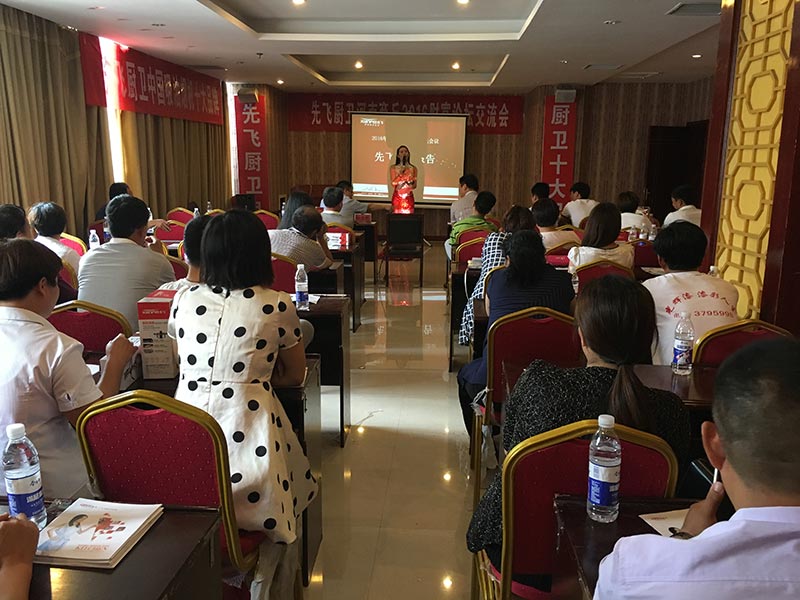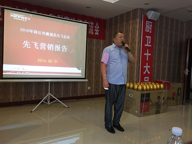 虞城二十二個(gè)鄉(xiāng)鎮(zhèn)市場,共有七十多人到會,十五米先飛超越版展柜強(qiáng)勢陳列,會場氣氛極為熱烈,臺上臺下互動頻繁,客戶常常樂不可支。先飛公司聶總、大區(qū)總監(jiān)趙國偉經(jīng)理到會,并分別分享了廚衛(wèi)行業(yè)分析、先飛新品推介,引發(fā)客戶深深共鳴!虞城張總現(xiàn)身說法,坦誠闡述了自己的生意經(jīng)與經(jīng)商之道,讓大家非常佩服!
