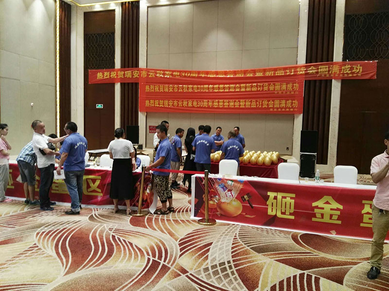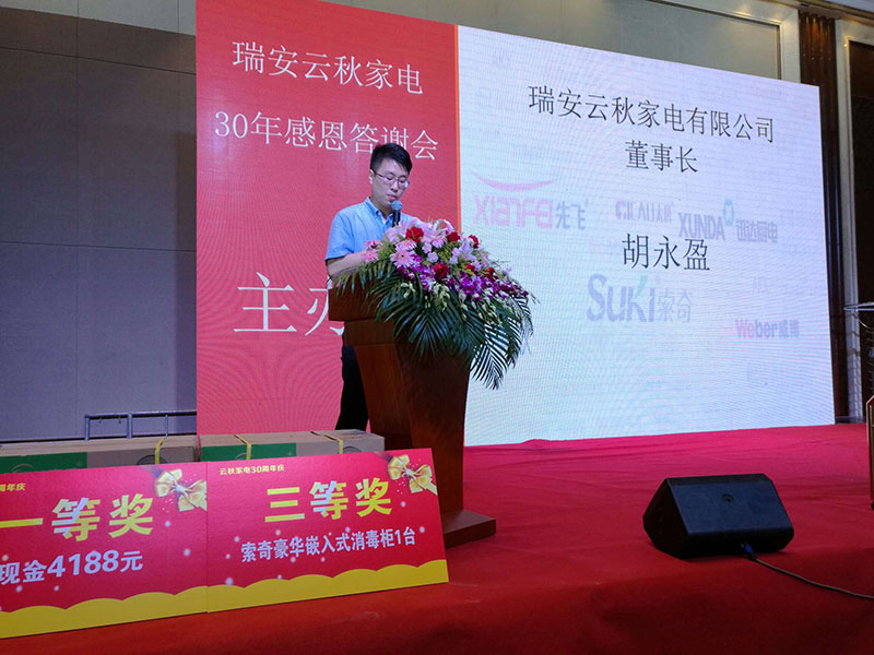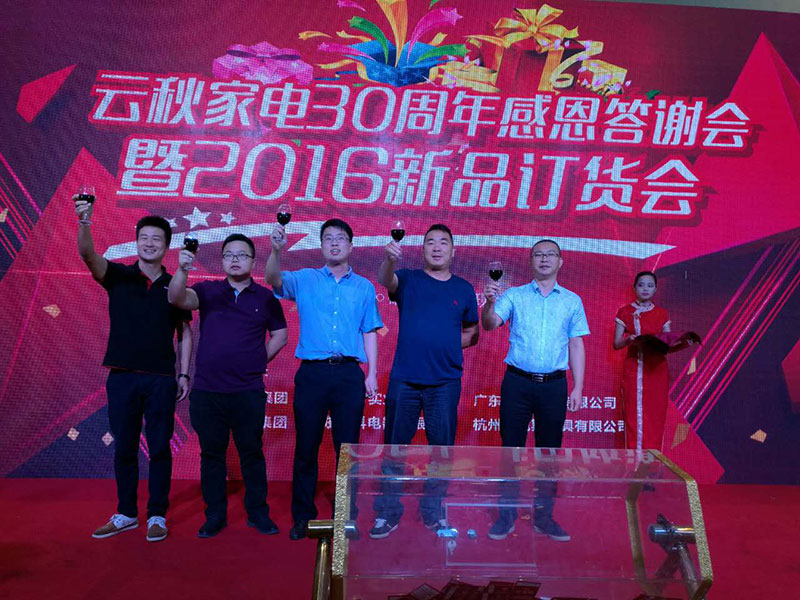 編者按:2016年8月8日下午,云秋家電30周年感恩答謝會暨2016年先飛秋季新品訂貨會在瑞安喜來君悅大酒店火爆召開!溫州地區(qū)參會經銷商朋友多達30桌,近300多人。在云秋家電30周年之際,先飛公司董事長黃漢騰先生在會上回顧往昔,展望未來,分享先飛公司近況與新品,贏得大家熱烈掌聲!會議期間收款超過300萬,標志著會議圓滿成功!