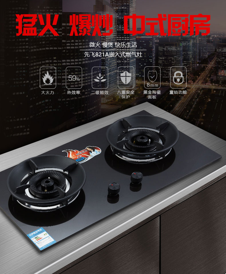 編者按:先飛灶具“猛火高效聚能盤”設(shè)計,不僅可有效提升能效等級,有效防風(fēng)與節(jié)能環(huán)保,而且使得面板溫度從200℃以上,直接降至40℃左右,面板與旋鈕再已不燙手了,陶瓷面板與玻璃面板爆板概率也從千分率直接下降到萬分率。