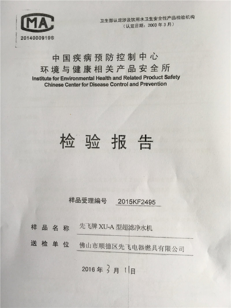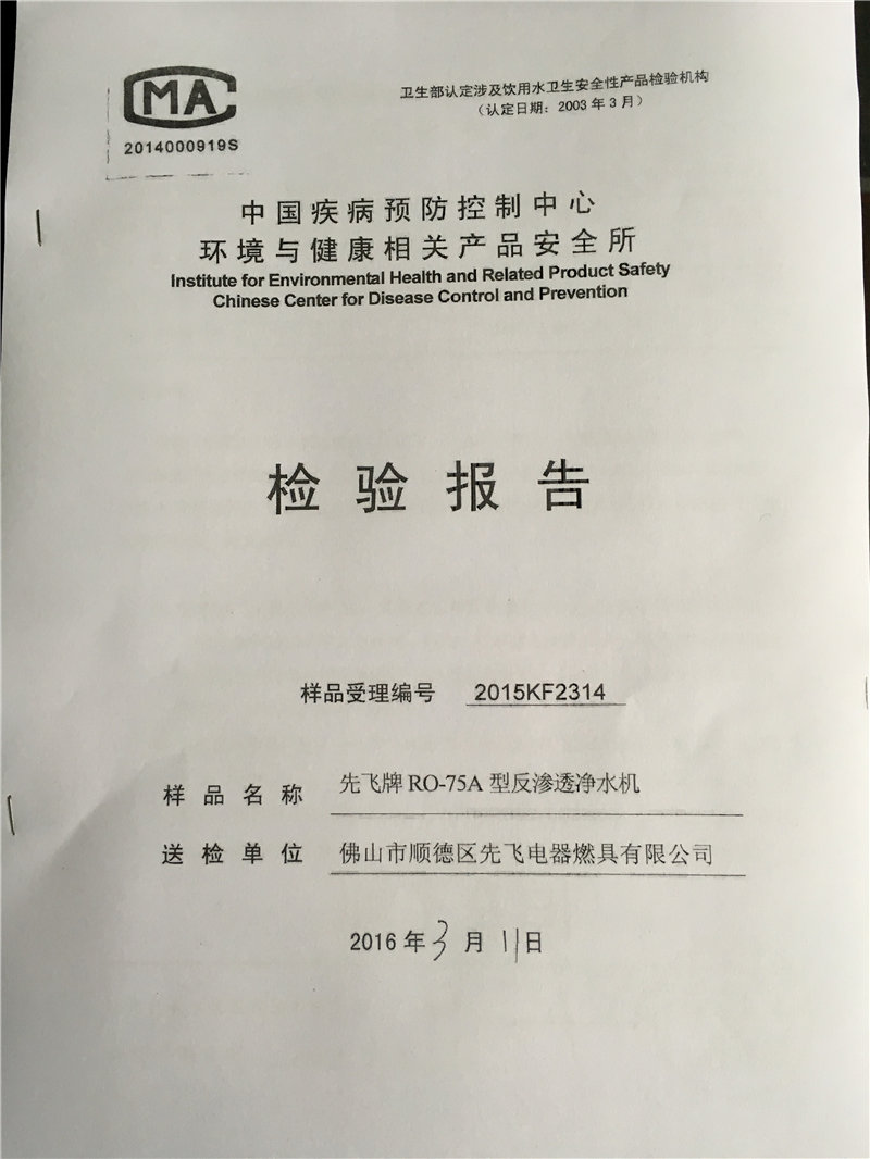 先飛公司在一次性通過凈水器現(xiàn)代化無塵車間驗收之后、順利拿到凈水器全系列產(chǎn)品檢測報告,并于近日完美榮獲國家衛(wèi)生部門涉水產(chǎn)品衛(wèi)生批文。這標(biāo)志著先飛凈水器在不斷打造核心競爭優(yōu)勢的基礎(chǔ)上又一次實現(xiàn)新的騰飛,這也是先飛公司堅守品質(zhì)良心底線,不斷追求凈水器科技創(chuàng)新,高屋建瓴,占領(lǐng)凈水器行業(yè)制高點,展強者雄姿,取信于天下的又一份靚麗成績單!
