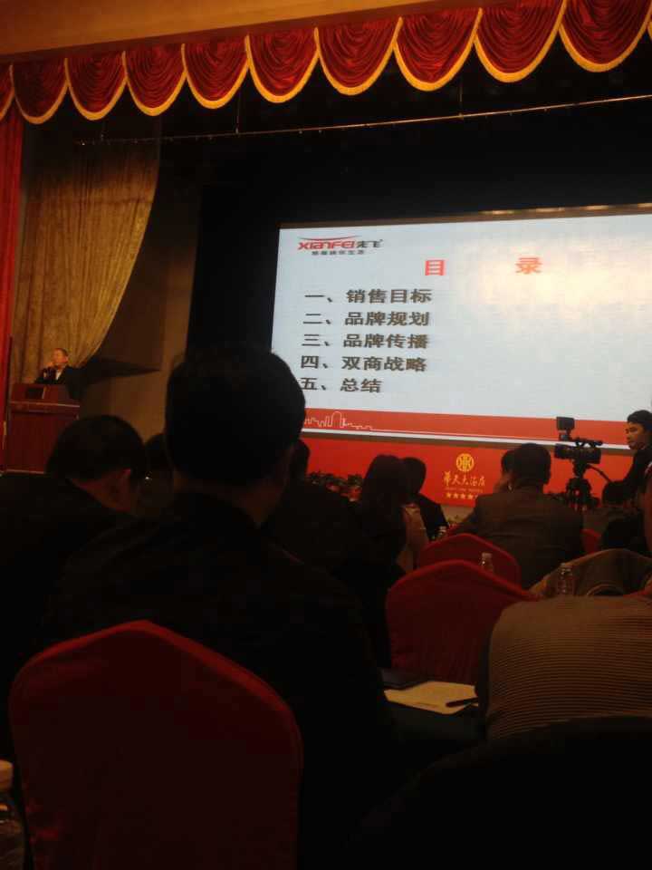 會上由先飛公司游總致開幕詞,游總作了廚衛(wèi)行業(yè)分析,講到了先飛“雙驅(qū)動戰(zhàn)略”,以及2015年全面投放央視二套、央視七套電視廣告。