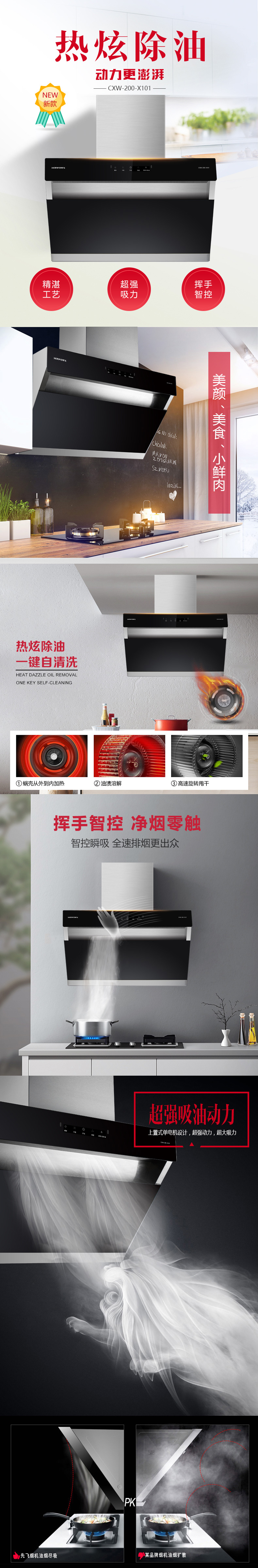 熱炫除油 一鍵自清洗 超強(qiáng)吸油動力 揮手智控 凈煙零觸 黑晶玻璃 輕輕一抹 煥然一新 大油杯貼墻設(shè)計(jì) 閃電般速吸油煙 20m3/min