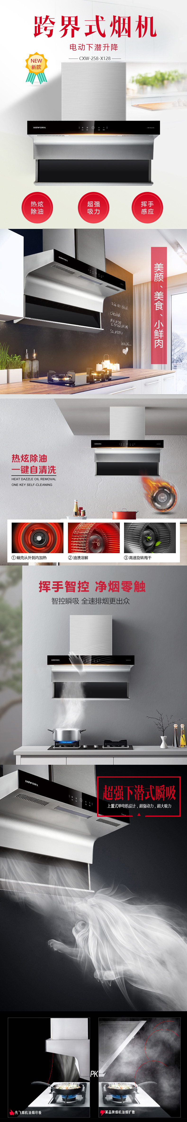 熱炫除油 一鍵自清洗 電動(dòng)下潛升降 超強(qiáng)吸油動(dòng)力 揮手智控 凈煙零觸 黑晶玻璃 輕輕一抹 煥然一新 大油杯貼墻設(shè)計(jì) 閃電般速吸油煙 22m3/min