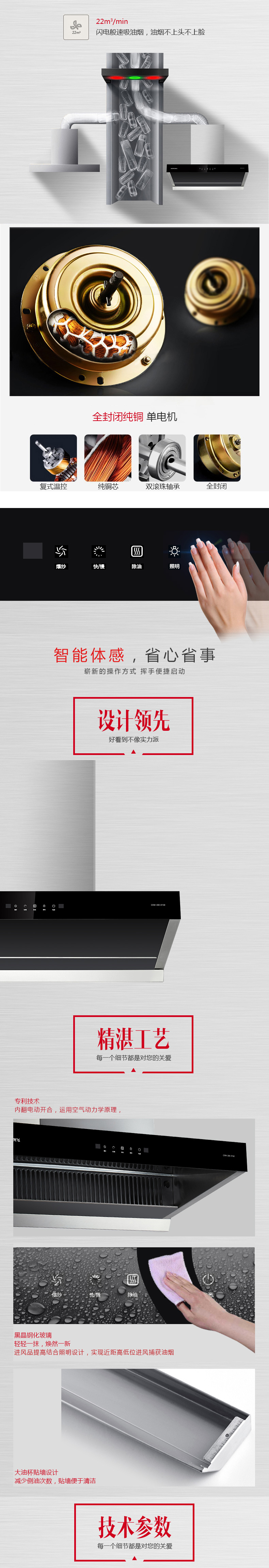 熱炫除油 一鍵自清洗 爆炒大吸力 內(nèi)翻電動(dòng)開合 超強(qiáng)吸油動(dòng)力 揮手智控 凈煙零觸 黑晶玻璃 輕輕一抹 煥然一新 大油杯貼墻設(shè)計(jì) 閃電般速吸油煙 22m3/min