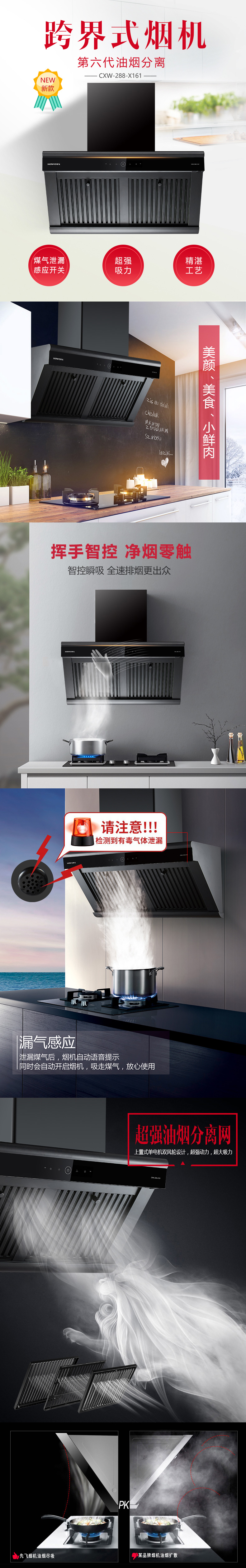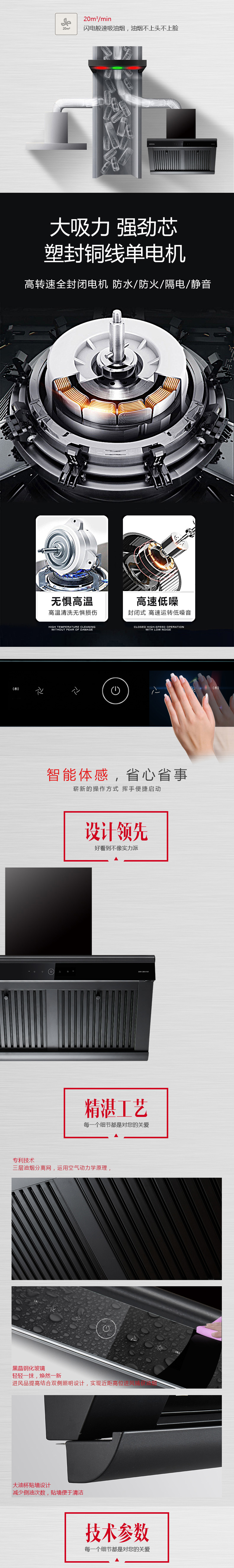 帶煤氣泄漏感應(yīng) 爆炒大吸力 鋁合金加重三層油煙分離網(wǎng) 超強(qiáng)吸油動(dòng)力 揮手智控 凈煙零觸 閃電般速吸油煙 20m3/min